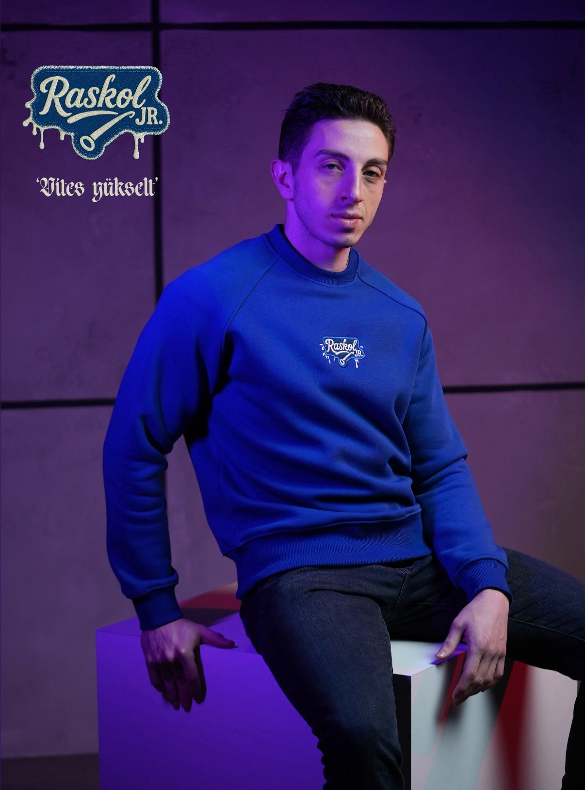 Koyu mavi denim özenle kesilerek,üzerine yüksek kalite nakış ile üretilen Raskol JR. Saks Mavi Sweatshirt.